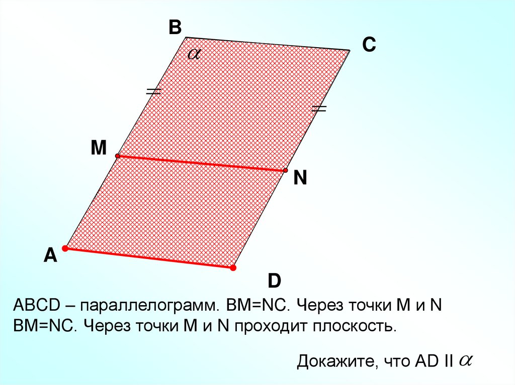 ABCD – параллелограмм. ВМ=NC. Через точки М и N