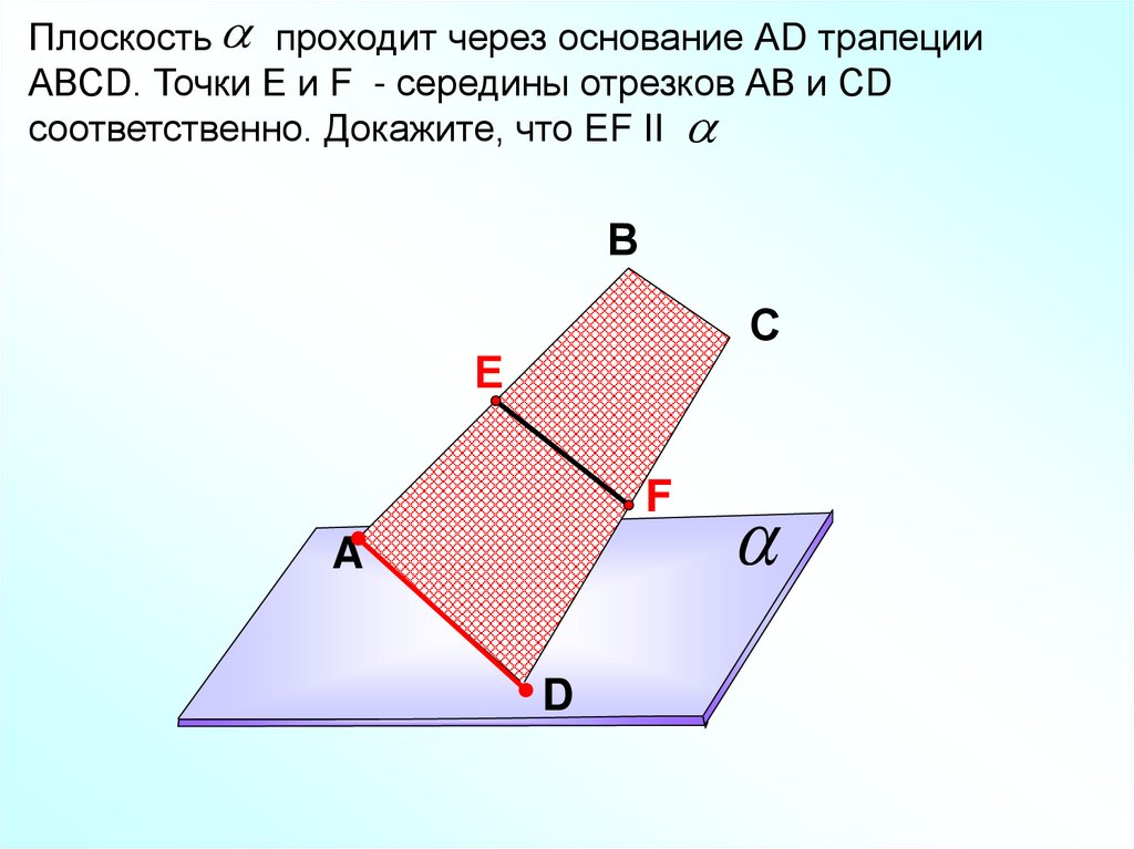 Плоскость проходит через основание АD трапецииАВСD. Точки Е и F - середины отрезков АВ и СD