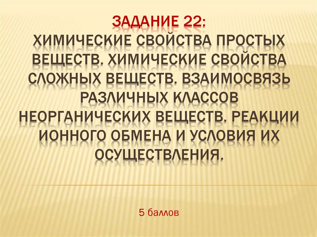 1. Задание 22: Химические свойства простых веществ. Химические свойства сложных веществ. Взаимосвязь различных классов