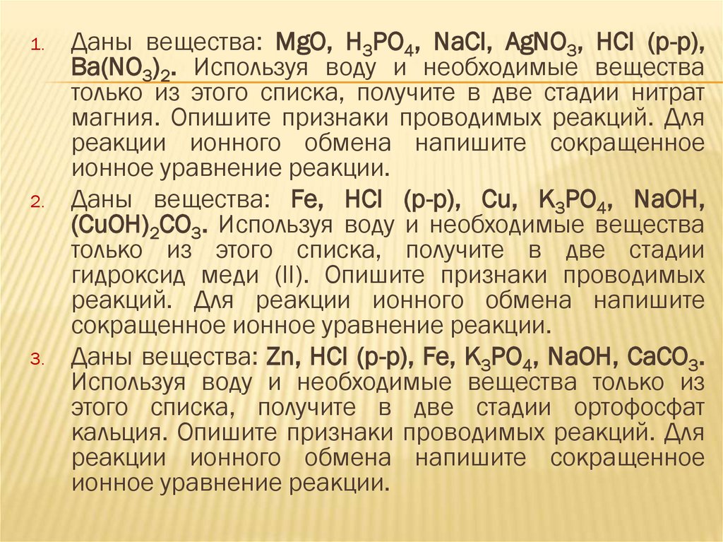 Даны вещества: MgO, H3PO4, NaCl, AgNO3, HCl (р-р),