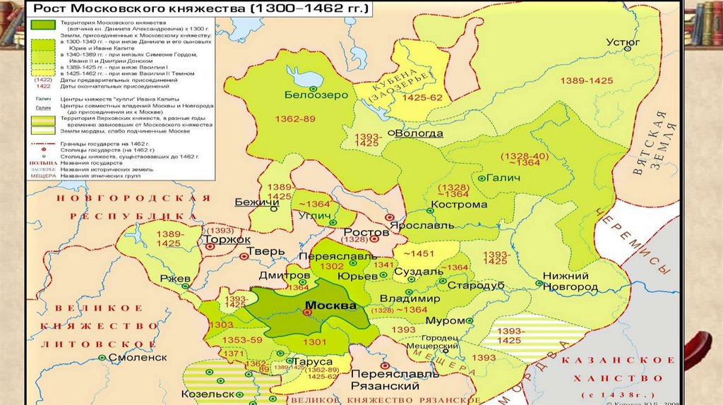 В правление Василия II Тёмного (1425-1462 гг.):• в 1456 году Новгородская республика была вынуждена признать