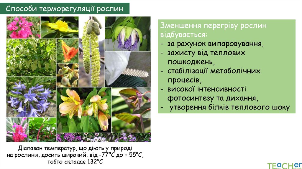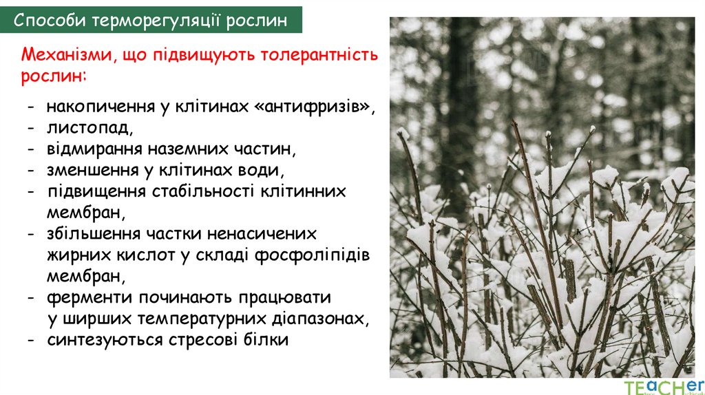 Способи терморегуляції рослинМеханізми, що підвищують толерантність