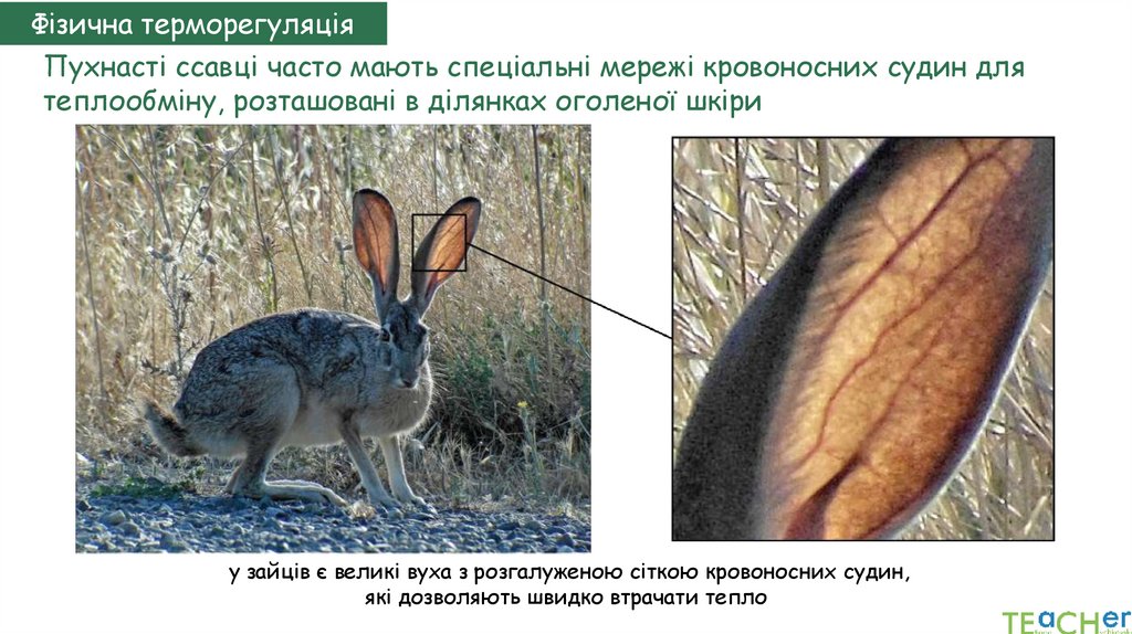 у зайців є великі вуха з розгалуженою сіткою кровоносних судин,