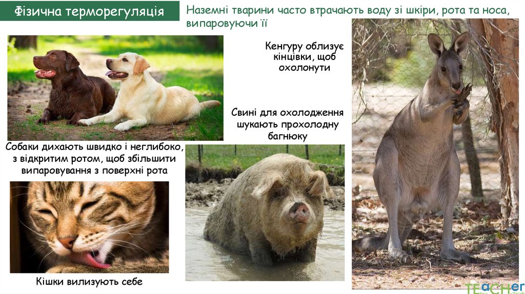 Фізична терморегуляціяНаземні тварини часто втрачають воду зі шкіри, рота та носа,