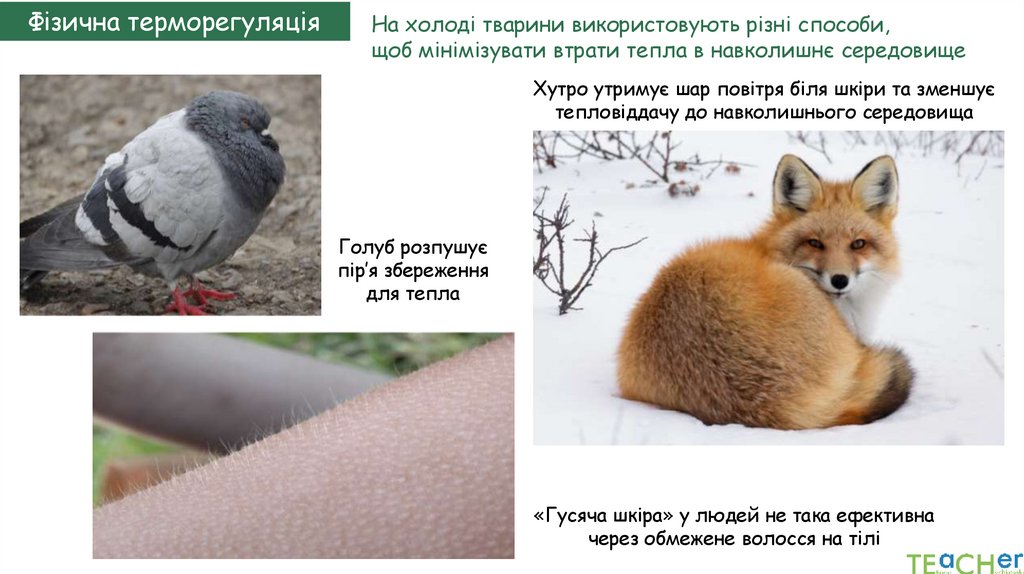 Фізична терморегуляціяНа холоді тварини використовують різні способи,