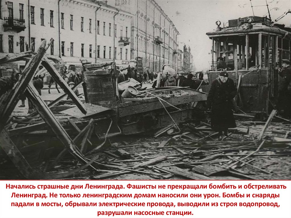 Начались страшные дни Ленинграда. Фашисты не прекращали бомбить и обстреливатьЛенинград. Не только ленинградским домам наносили они урон. Бомбы и снаряды