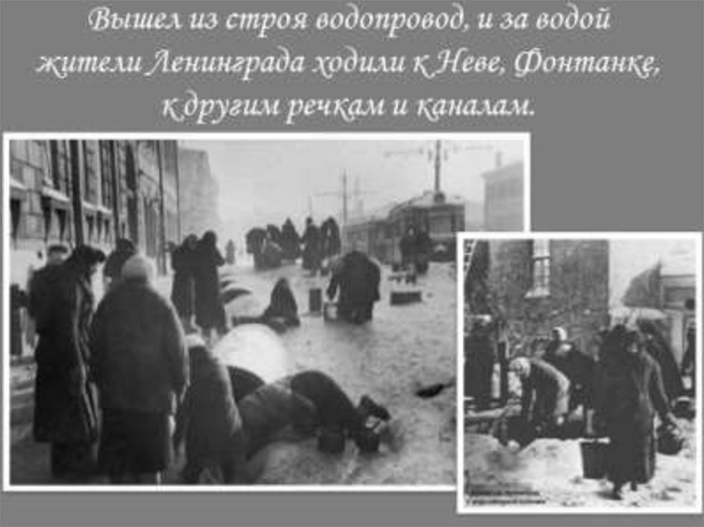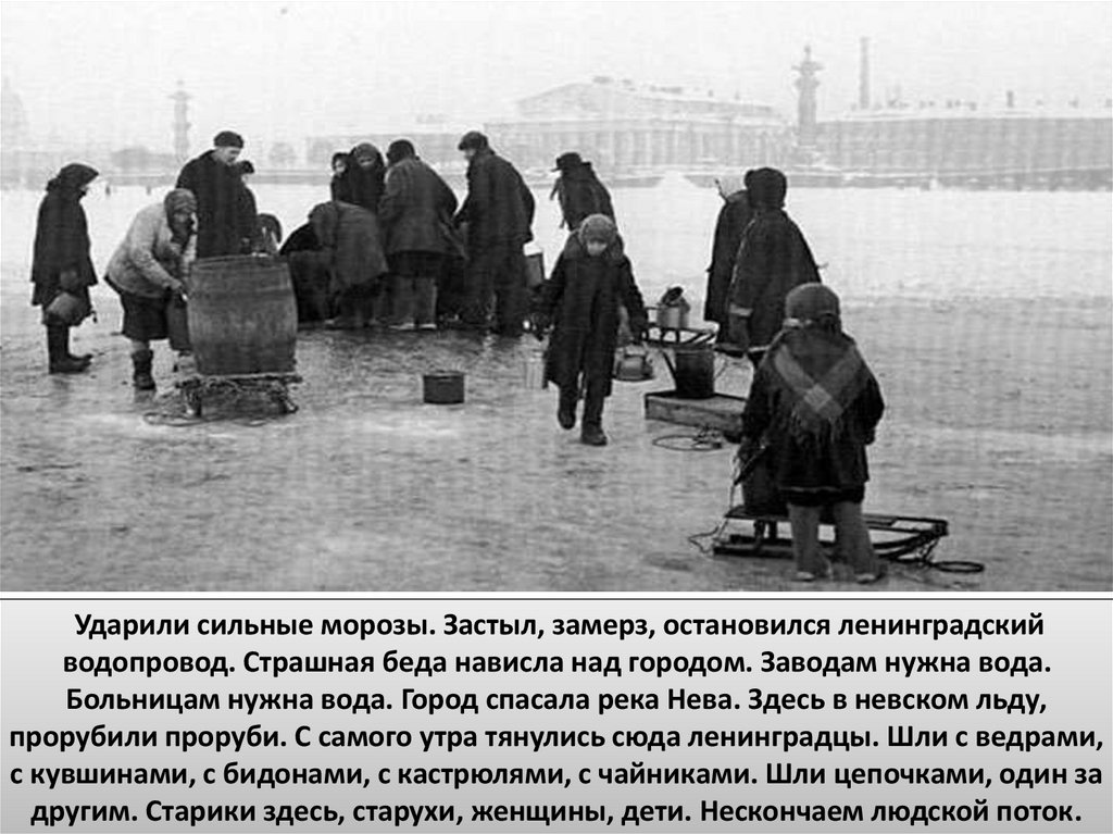 ленинградцам выкупать хлеб по хлебным карточкам, приносили им воду с Невы и