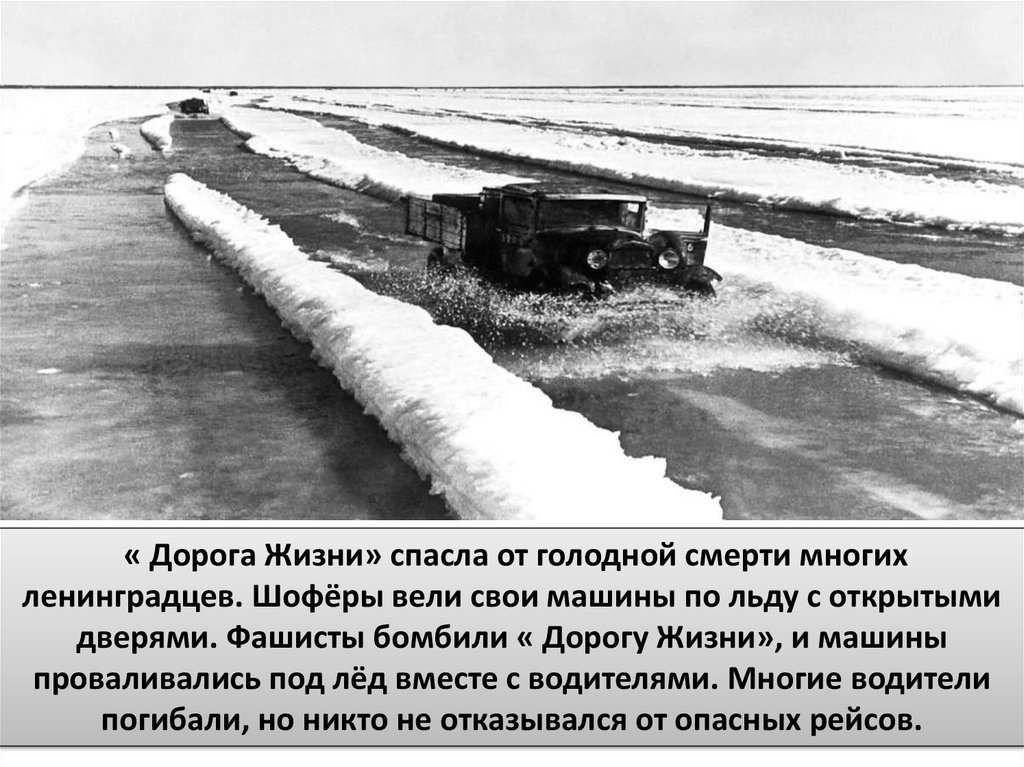 « Дорога Жизни» спасла от голодной смерти многихленинградцев. Шофёры вели свои машины по льду с открытыми