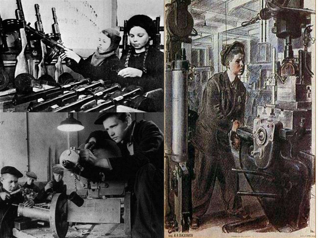 выпускали боеприпасы и оружие для фронта. Они рыли окопы и работали на первых