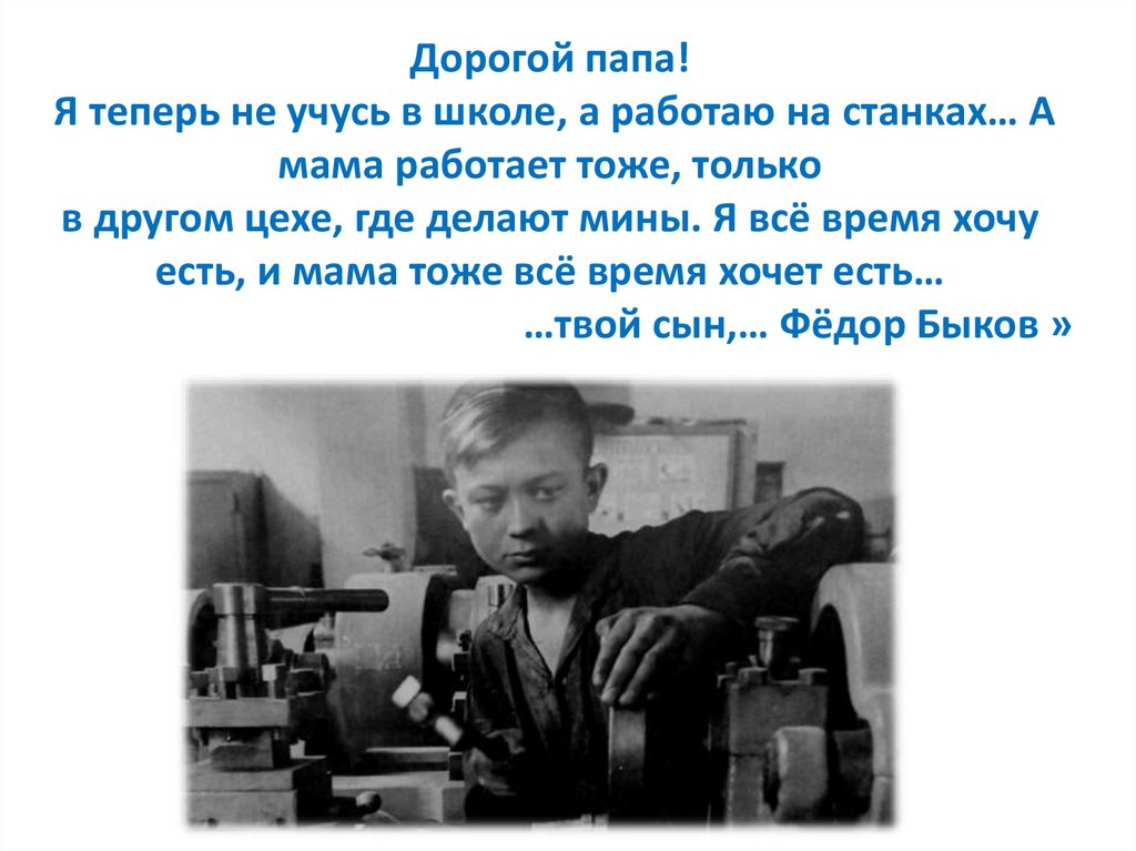 Дорогой папа!Я теперь не учусь в школе, а работаю на станках… А