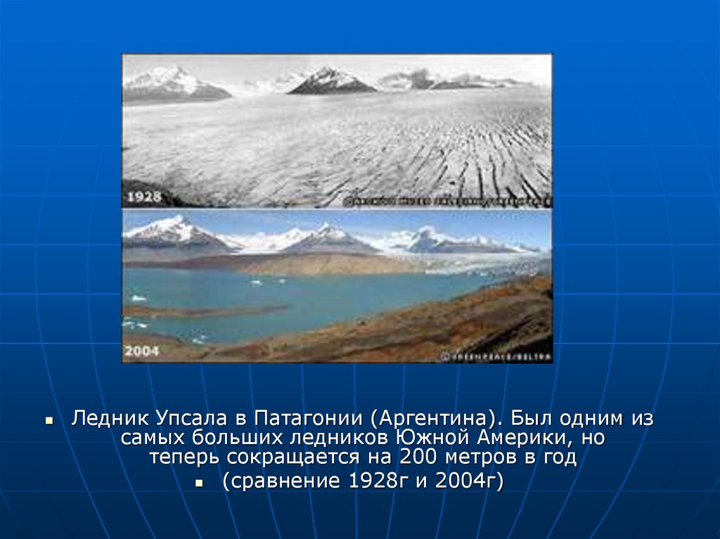 Ледник Упсала в Патагонии (Аргентина). Был одним изсамых больших ледников Южной Америки, но