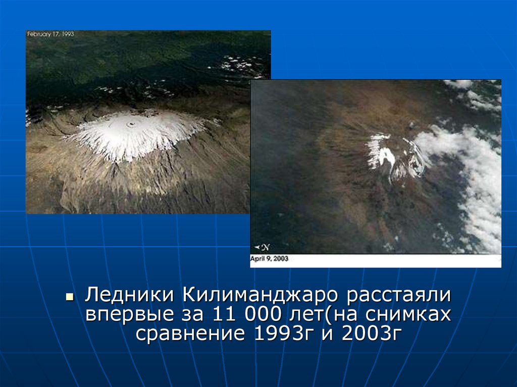 Ледники Килиманджаро расстаяливпервые за 11 000 лет(на снимках
