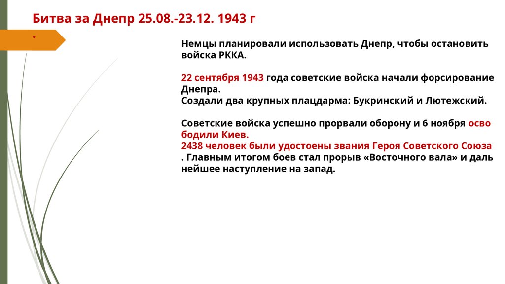 Битва за Днепр 25.08.-23.12. 1943 г.