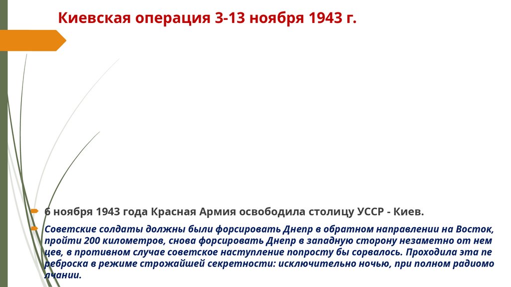 Киевская операция 3-13 ноября 1943 г.6 ноября 1943 года Красная Армия освободила столицу УССР - Киев.