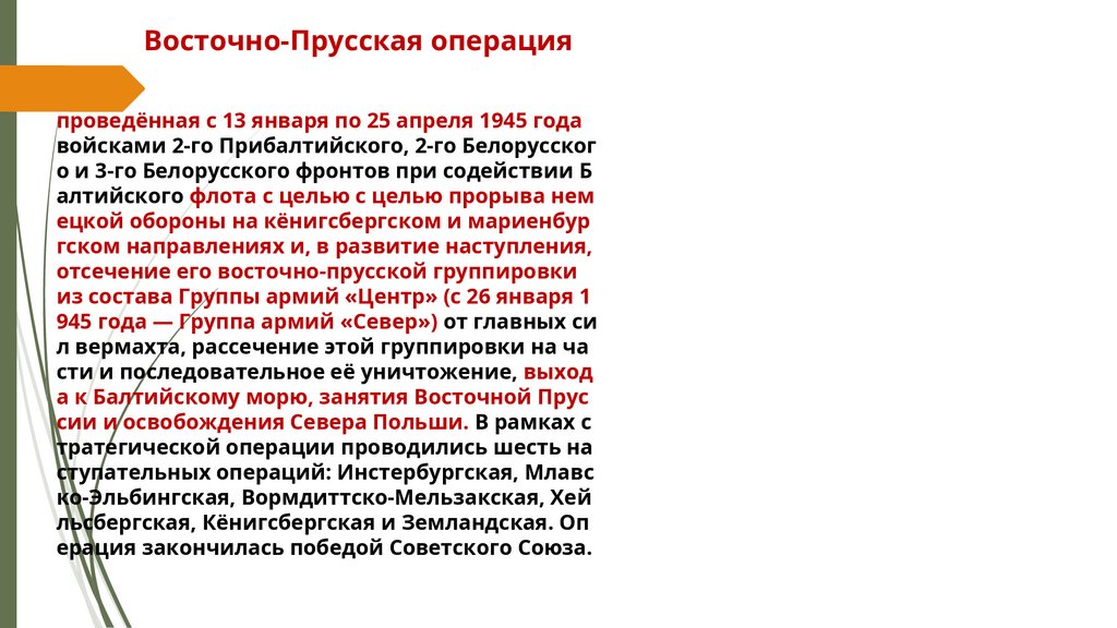Восточно-Прусская операцияпроведённая с 13 января по 25 апреля 1945 года