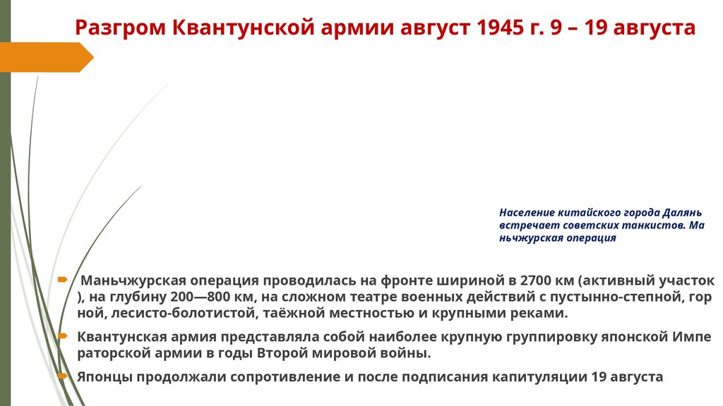 Разгром Квантунской армии август 1945 г. 9 – 19 августаНаселение китайского города Далянь