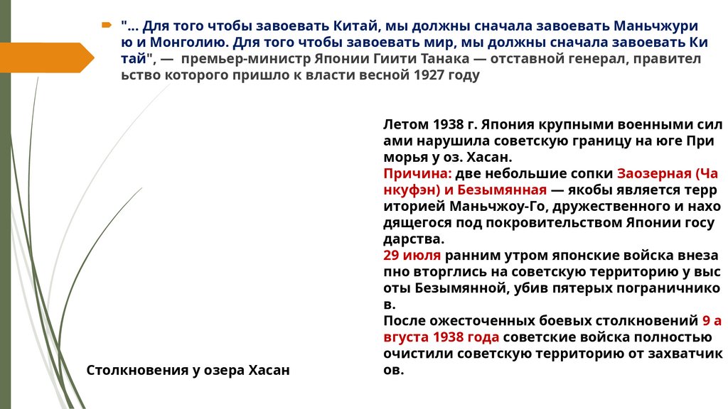 "... Для того чтобы завоевать Китай, мы должны сначала завоевать Маньчжурию и Монголию. Для того чтобы завоевать мир, мы должны сначала завоевать Ки