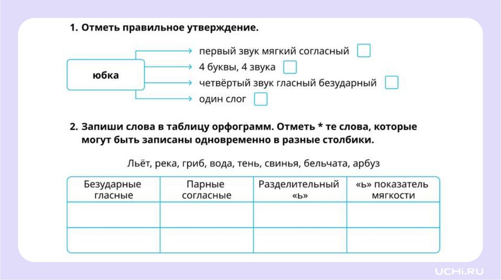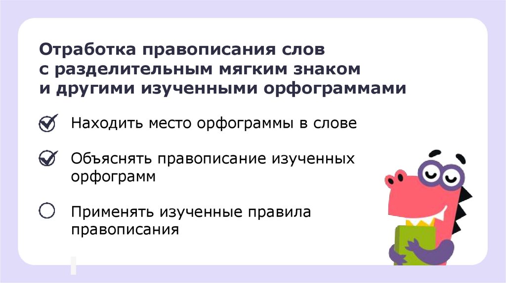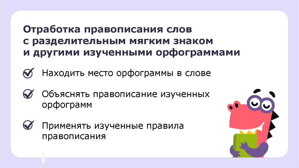Русский язык, 2 класс, Отработка правописания слов с разделительным мягким знаком и другими изученными орфограммами