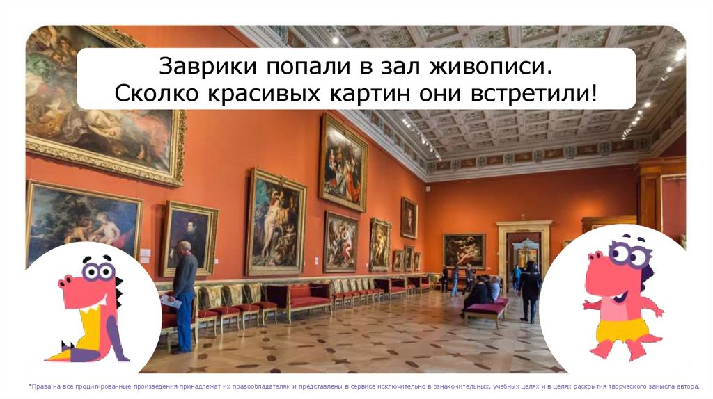 Заврики попали в зал живописи.Сколко красивых картин они встретили!