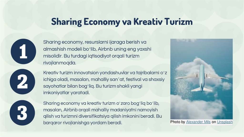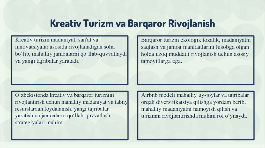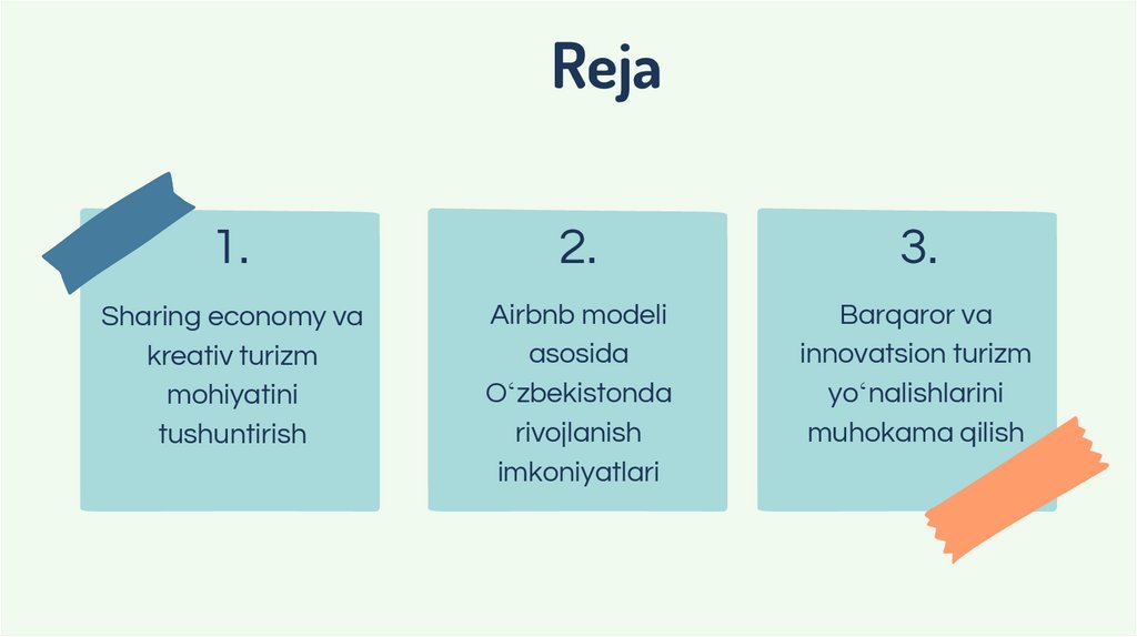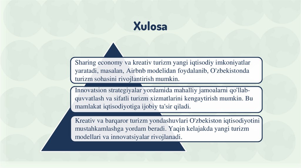 XulosaSharing economy va kreativ turizm yangi iqtisodiy imkoniyatlar