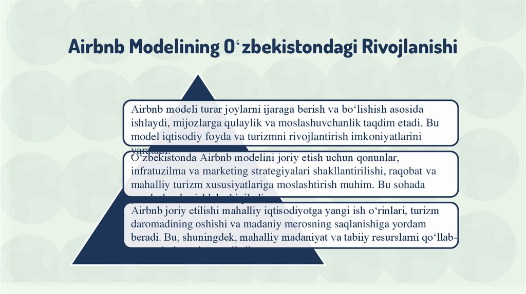 Airbnb Modelining O‘zbekistondagi RivojlanishiAirbnb modeli turar joylarni ijaraga berish va bo‘lishish asosida