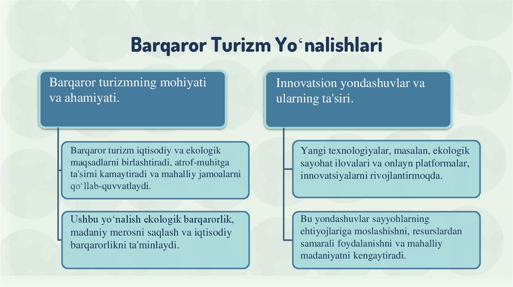 Barqaror Turizm Yo‘nalishlariBarqaror turizmning mohiyati