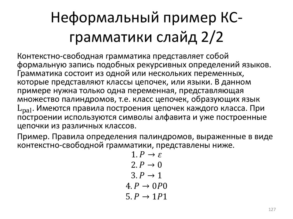 Следующие системы записи не являются автоматными, но играютважную роль в теории автоматов и ее приложениях.