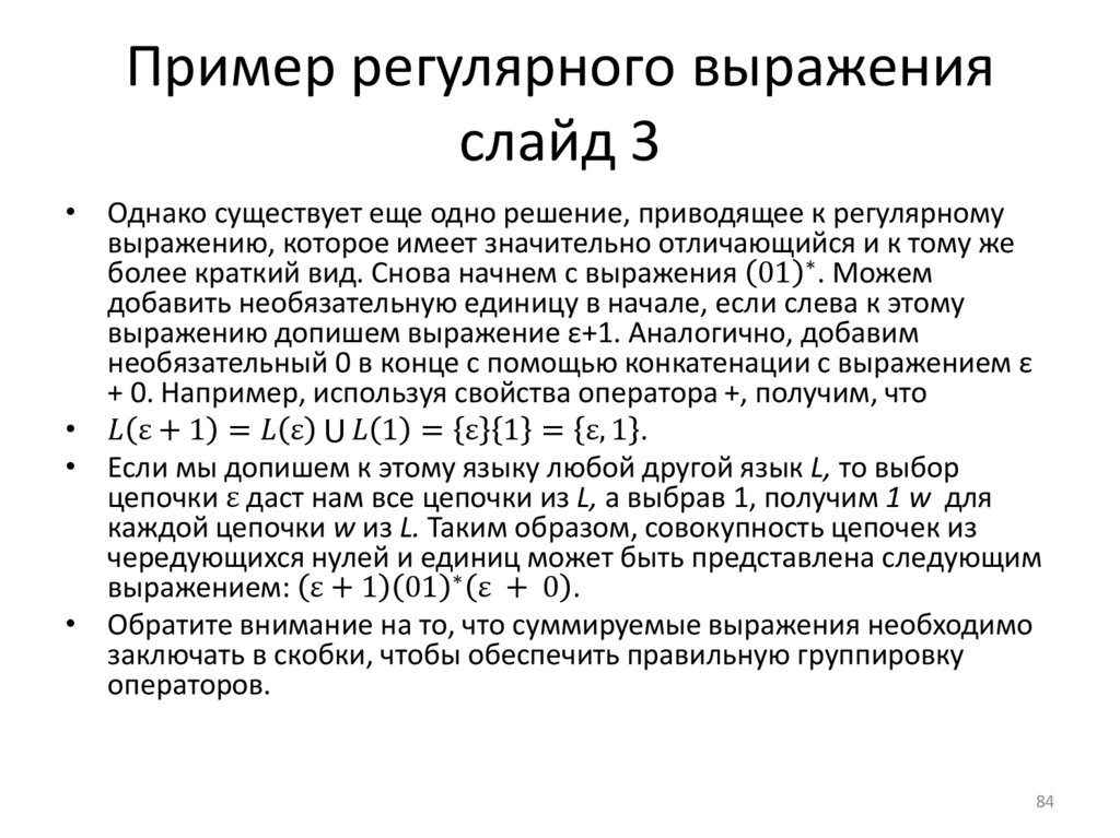 • Иногда необходимо исключать из множества цепочек пустую