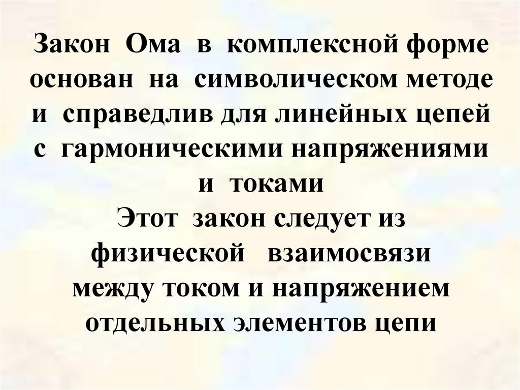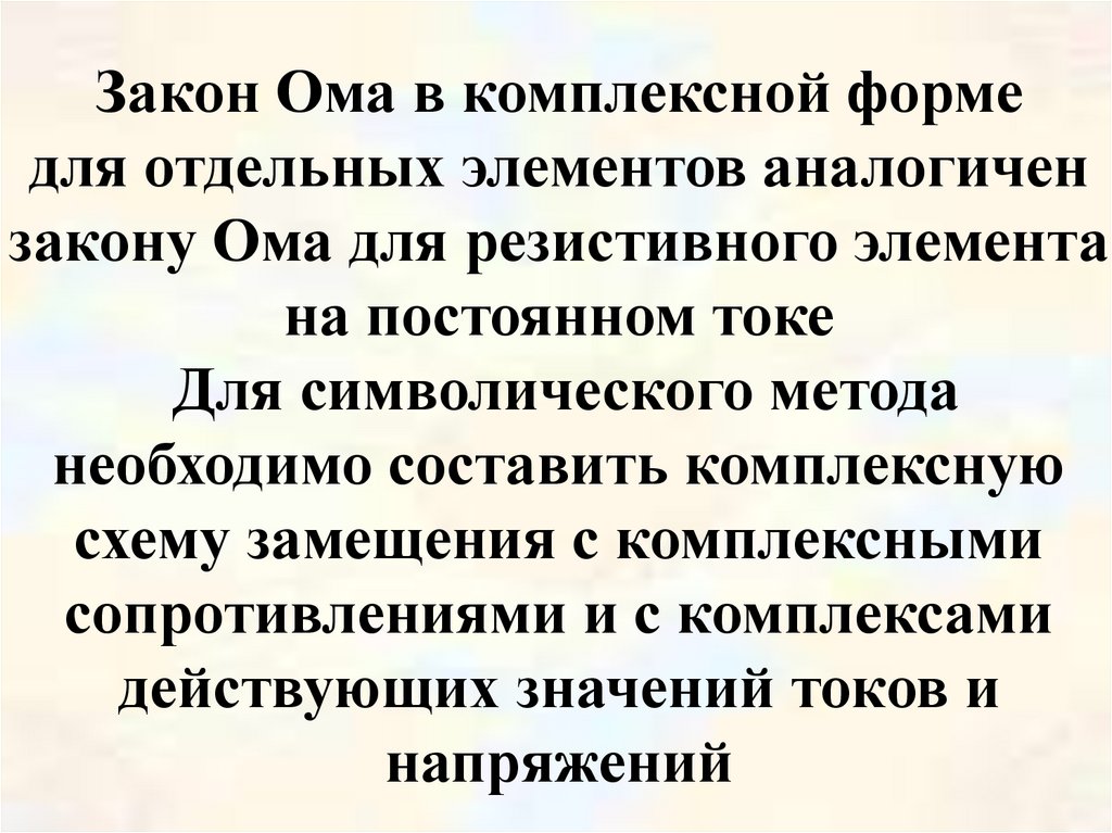 Закон Ома в комплексной формедля отдельных элементов аналогичен