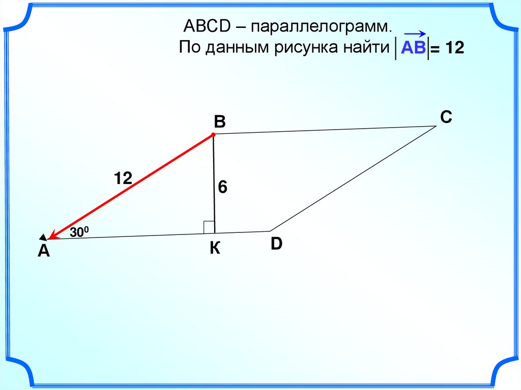АВСD – параллелограмм.По данным рисунка найти АВ = 12