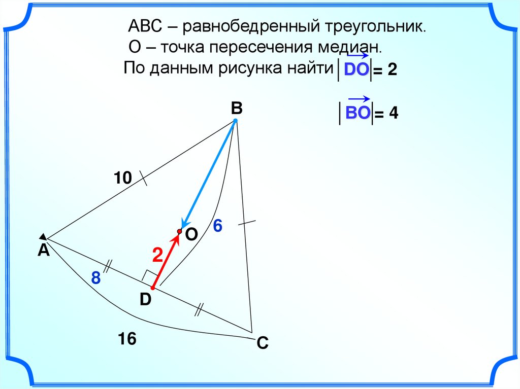 АВС – равнобедренный треугольник.О – точка пересечения медиан.