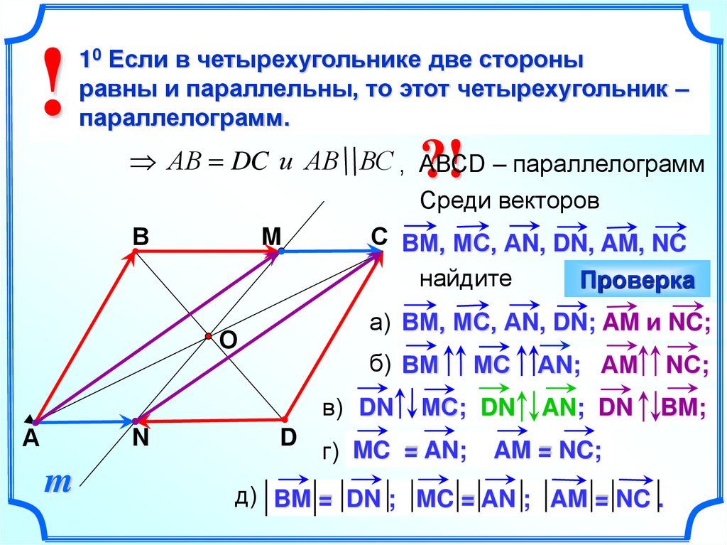АВ DC и АВ ВС , АВСD – параллелограмм