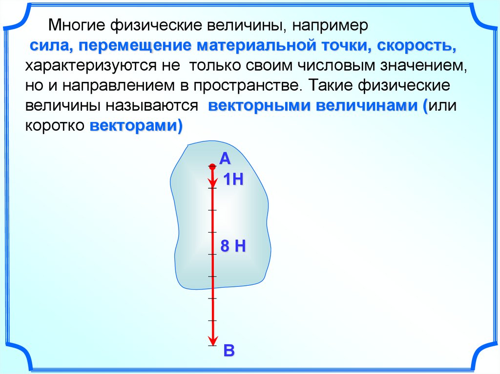 Многие физические величины, напримерсила, перемещение материальной точки, скорость,