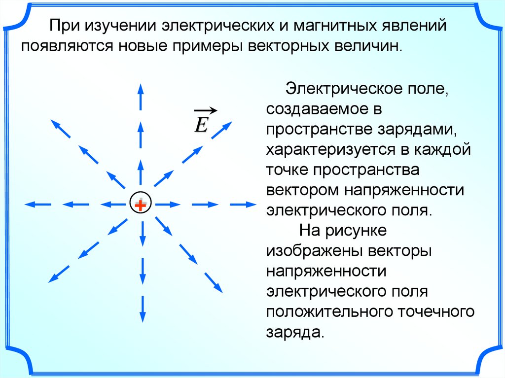 При изучении электрических и магнитных явленийпоявляются новые примеры векторных величин.