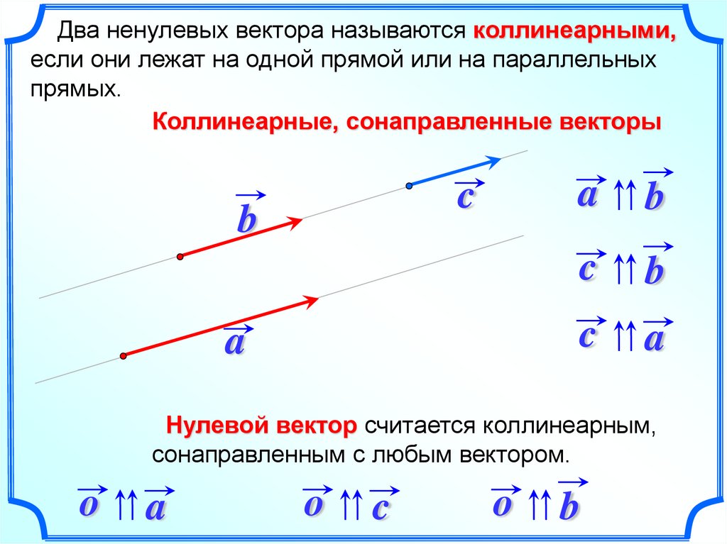Два ненулевых вектора называются коллинеарными,если они лежат на одной прямой или на параллельных