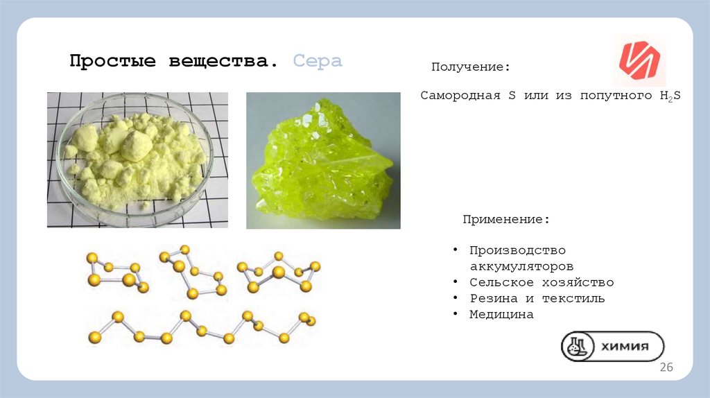 Сера (англ. Sulfur, нем. Schwefel) известна с