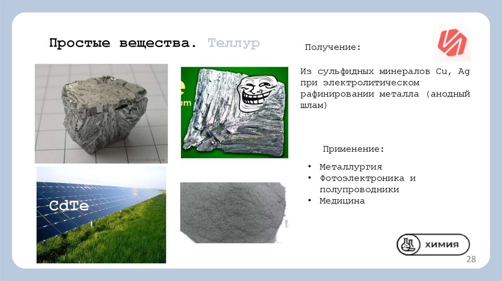Этимология и картинкиТеллур (англ. Tellurium, нем. Tellur) был открыт в конце