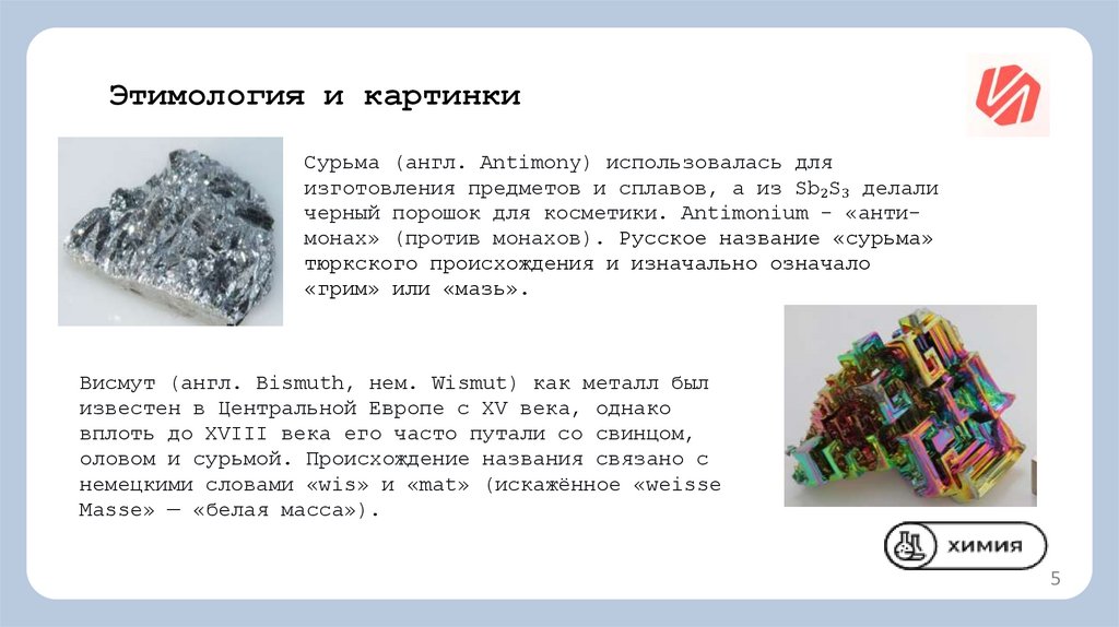 Этимология и картинкиСурьма (англ. Antimony) использовалась для