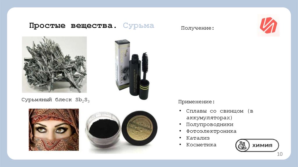 изготовления предметов и сплавов, а из Sb₂S₃ делали