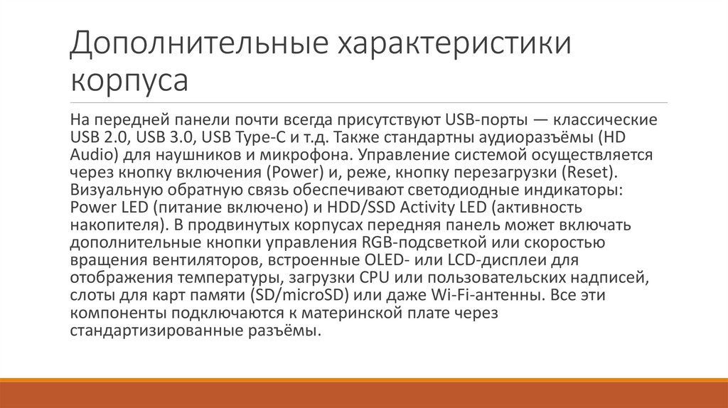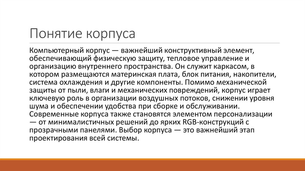 Понятие корпусаКомпьютерный корпус — важнейший конструктивный элемент,