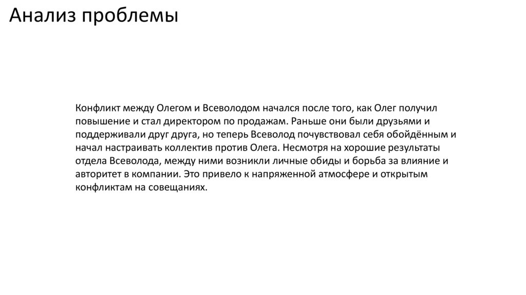 Анализ проблемыКонфликт между Олегом и Всеволодом начался после того, как Олег получил