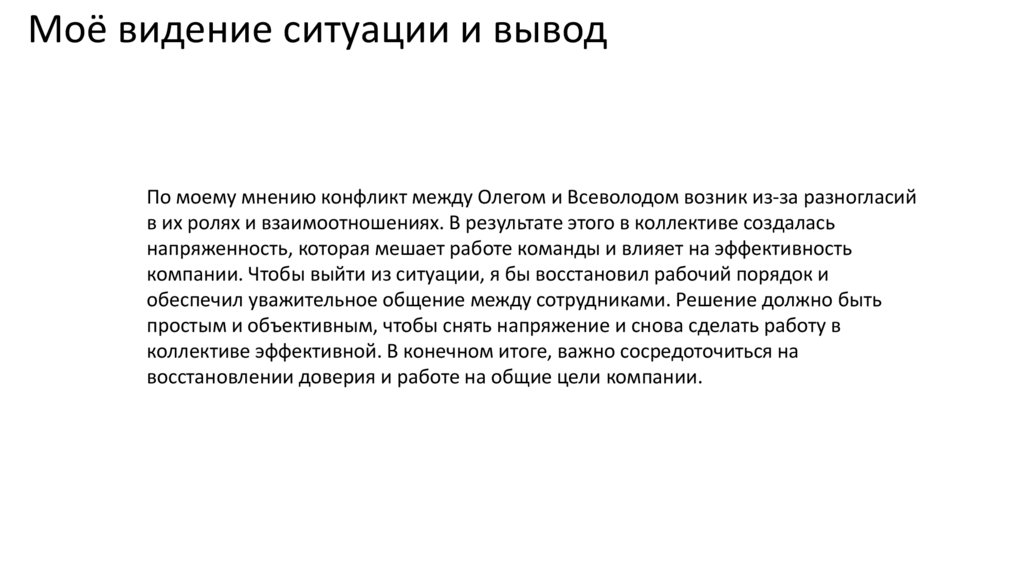Моё видение ситуации и выводПо моему мнению конфликт между Олегом и Всеволодом возник из-за разногласий