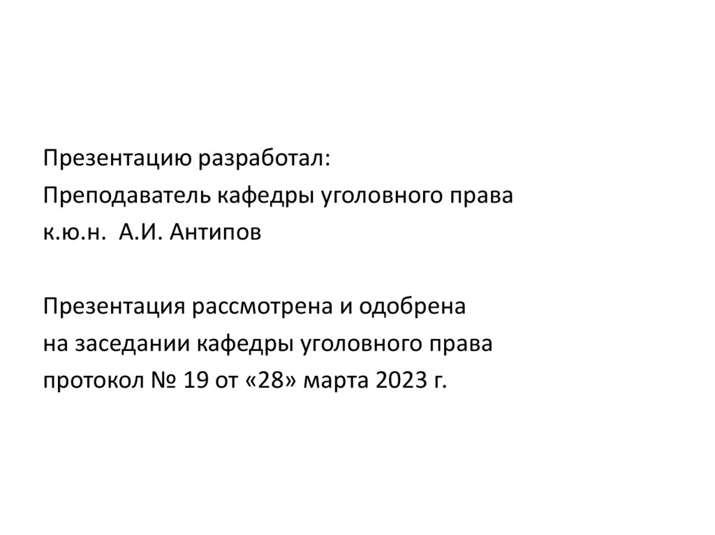 Презентацию разработал:Преподаватель кафедры уголовного права