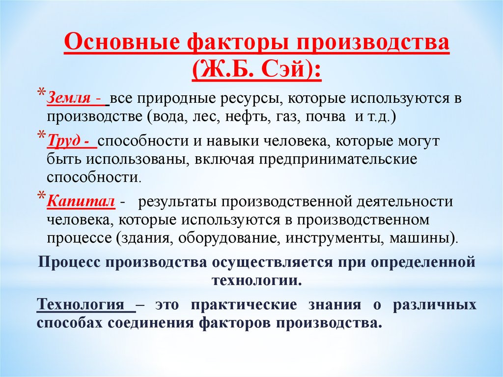 производстве (вода, лес, нефть, газ, почва и т.д.)