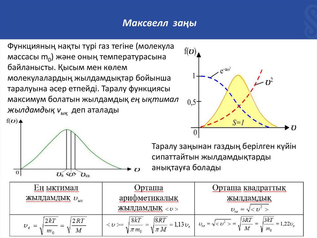 Максвелл заңыФункцияның нақты түрі газ тегіне (молекула