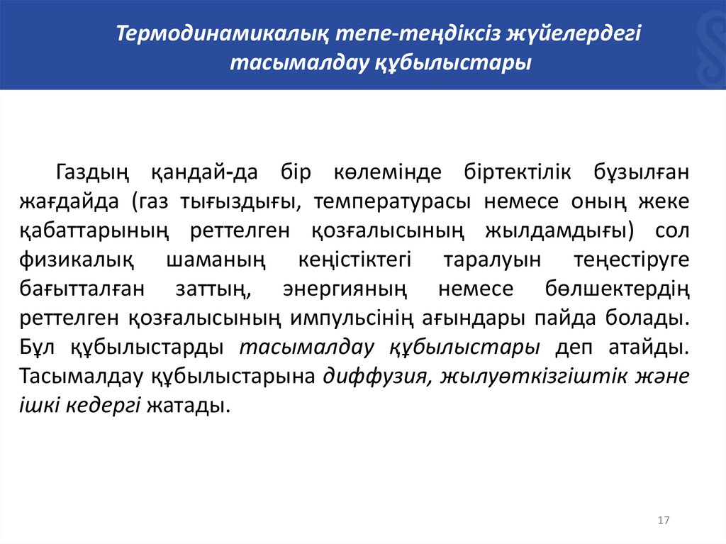 Термодинамикалық тепе-теңдіксіз жүйелердегітасымалдау құбылыстары