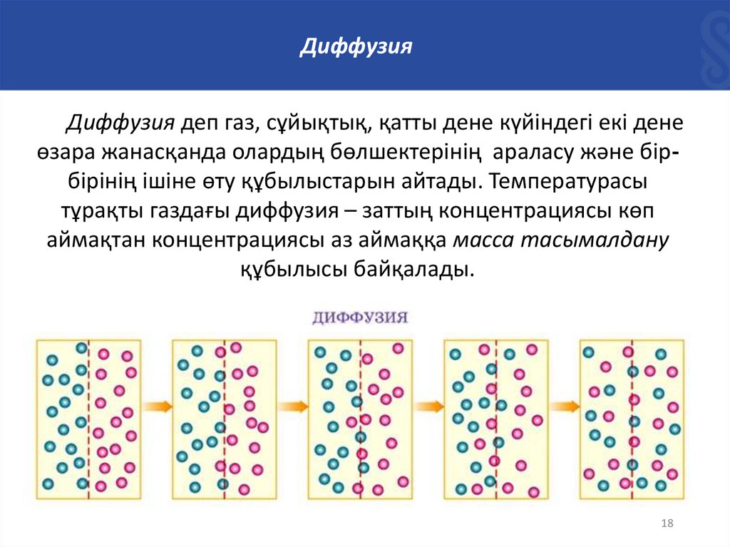 ДиффузияДиффузия деп газ, сұйықтық, қатты дене күйіндегі екі дене