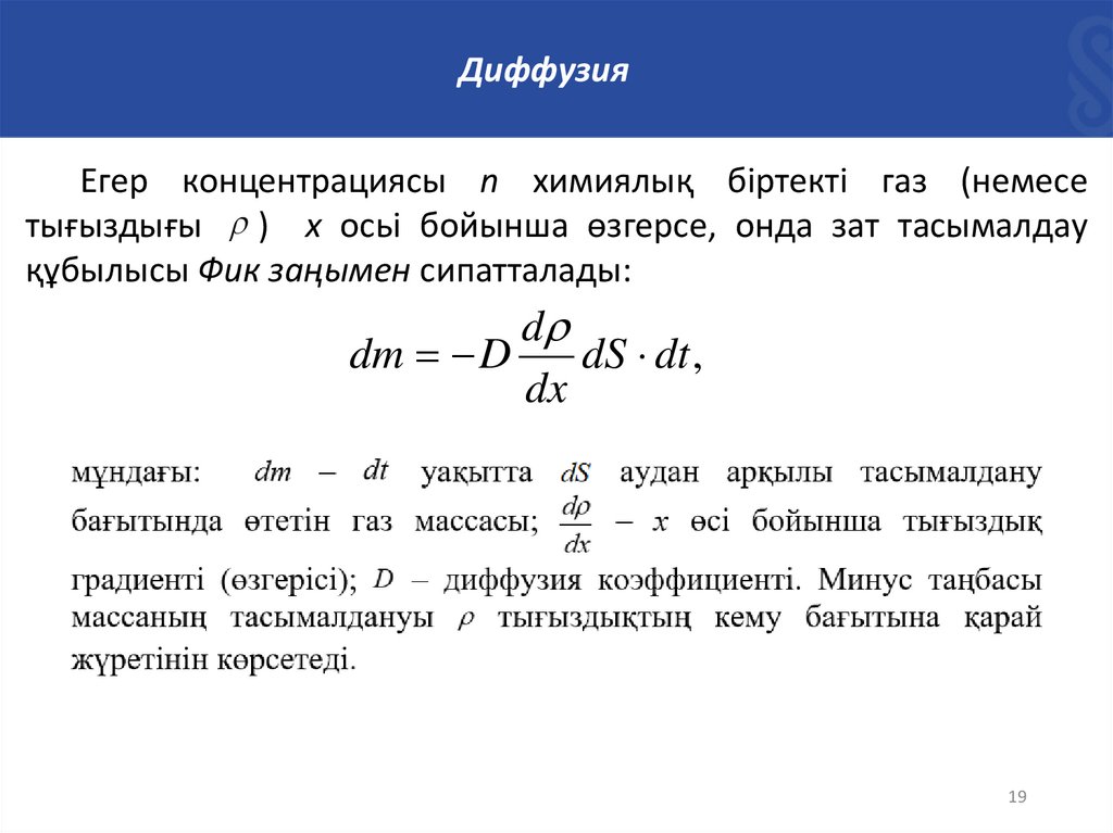 тығыздығы ) х осьі бойынша өзгерсе, онда зат тасымалдау