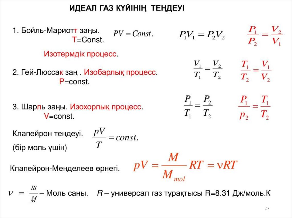• Идеал газдың күй теңдеуі.