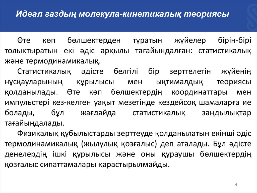 Идеал газдың молекула-кинетикалық теориясыӨте көп бөлшектерден тұратын жүйелер бірін-бірі